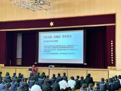 本日、3年生は6時間目に修学旅行の説明を行いました。学年主任の田中先生から修学旅行に行く目的や行き先、体験内容の説明がありました。