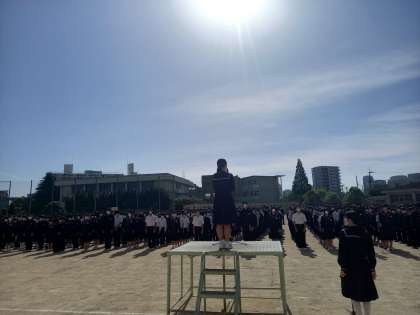全校集会では男女バレーボール部の表彰を行いました。また、生徒会役員よりゴールデンウィーク明けですが、体調管理に気をつけて学校生活を過ごしましょうとの話しがありました。