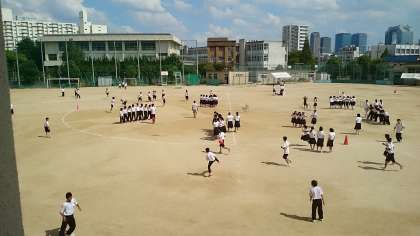 今日は、久しぶりの晴れている昼休みです。ボールで遊んでいる人もいますが、クラスの仲間と「ザ・チームワーク」の練習をしている人もいます。とてもほのぼのとした良い雰囲気を感じることができます。