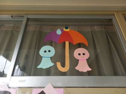 ボールの貸し出しはありませんので、図書館には多くの生徒が来てくれました。明日は1年生が一泊移住、2年生はスポーツ大会があるので、図書館支援員の方がてるてる坊主を掲示してくださいました。