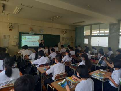 2時間目、1年生英語科の教育実習生研究授業です。大学から指導担当の先生もお越しいただいています。