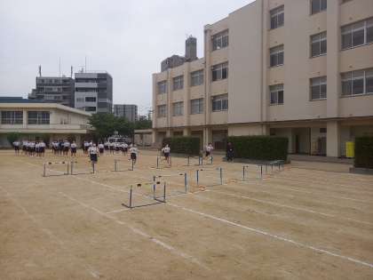 3時間目、2年生保健体育科、教育実習生の研究授業です。ハードルの授業です。