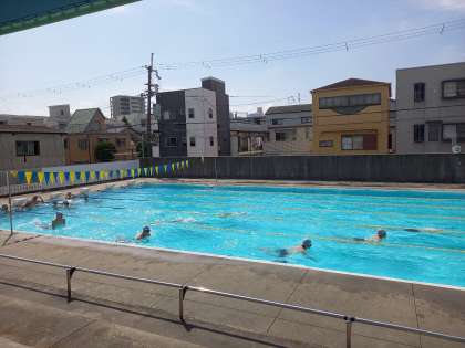 1時間目、プールでは3年生保健体育科の水泳の研究授業です。4泳法の泳力を確認します。