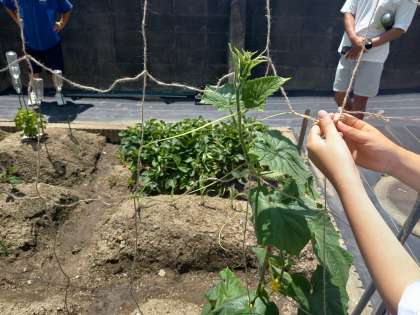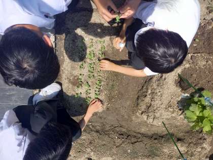 みんなで協力しています。ラディッシュの間引きも丁寧に行います。