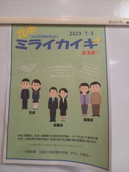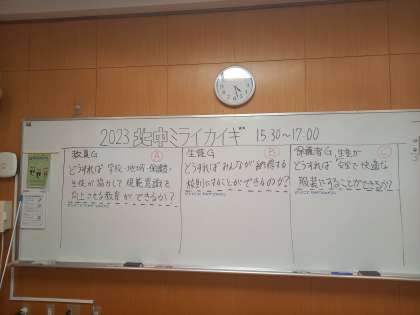 15時30分より生徒会、PTA、教員の代表が集まりみらい会議を行いました。