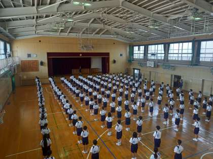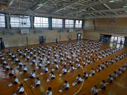 1.2時間目は1年生の学年練習です。1時間目は、体育館です。