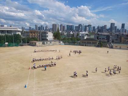 5時間目、1年生は学年種目等の練習です。交代で休憩を入れながら暑さに負けず取り組んでいます。