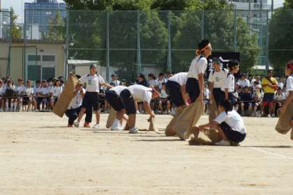 体育大会は、雨上がり、さわやかな秋晴れの中、実施いたしました。グランド整備のため、1時間開始時刻を繰り下げましたが、生徒達は、一生懸命がんばりました。