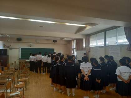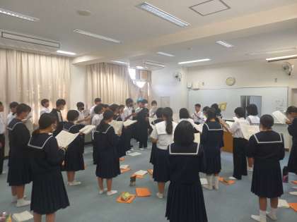 5時間目は、2年生は各教室、1年生は体育館や音楽室、多目的室等を使って合唱練習です。6時間目は1.2年生交代します。3年生は6時間目終了後、体育館で全員合唱の練習です。