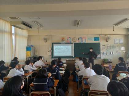 2時間目、1年生社会科の研究授業です。本時のねらいは、「アジアNIESに所属している韓国に着目し、東南アジアの経済発展の理由について理解する」です。