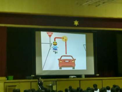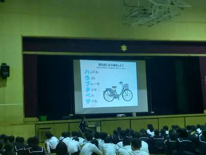 自転車の交通ルールをクイズ形式でわかりやすく説明していただきました。11月1日からは自転車マナーアップ強化月間です。交通ルールを守り大切な命を守りましょう。