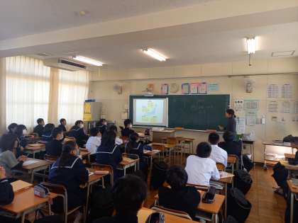 3時間目、1年生家庭科の研究授業です。「住まいに必要な空間」について学習します。
