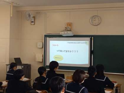 1時間目、2年生技術科の研究授業です。電気機器の安全な使い方について学習します。