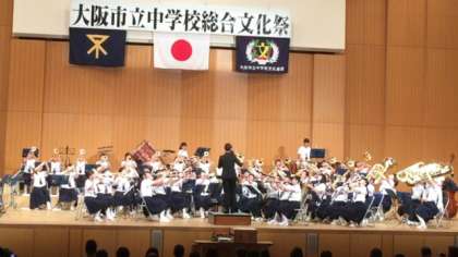 第24回 大阪市立中学校総合文化祭での吹奏楽部の演奏です。吹奏楽部は、大阪府大会の本部推薦により2年連続出場を果たしました。演奏曲は、「情熱大陸」「ディズニーメドレー」でした。