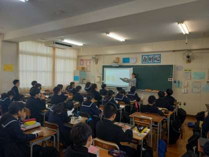 4時間目、1年生数学科の研究授業です。本時は「面や線を動かしてできる立体について学びます。」