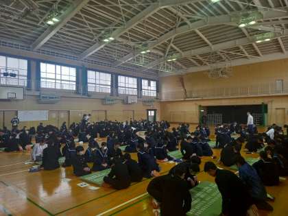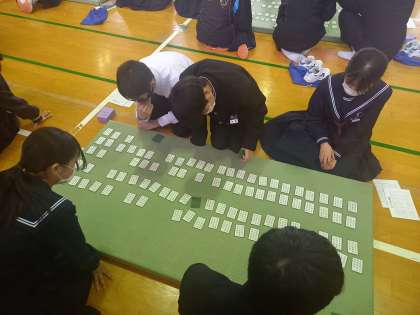 5.6時間目、1年生は百人一首大会です。これまで各クラスで練習に励んできました。本日5試合行います。優勝目指して頑張ってください!