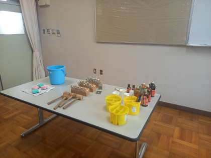 3時間目、1年生特別支援学級の研究授業です。レザークラフトの作成です。