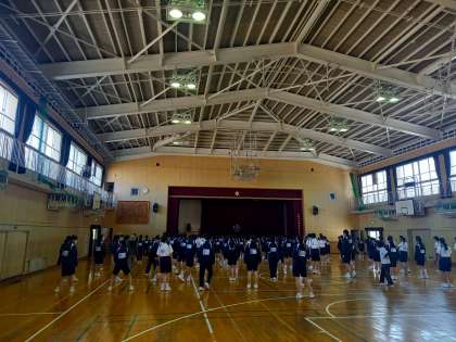 3時間目は、1年生3クラス合同でダンスの授業です。