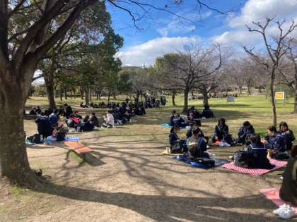 各クラスごとに集まって食べています。