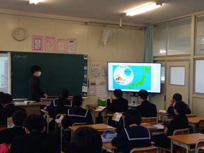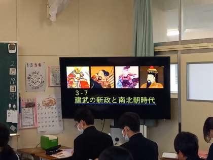 1時間目、1年生社会科の研究授業です。建武の神政と南北朝時代、「なぜ室町幕府は成立したのか」学習します!