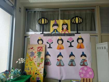 図書館前の飾り付け、支援員の皆様ありがとうございます!
