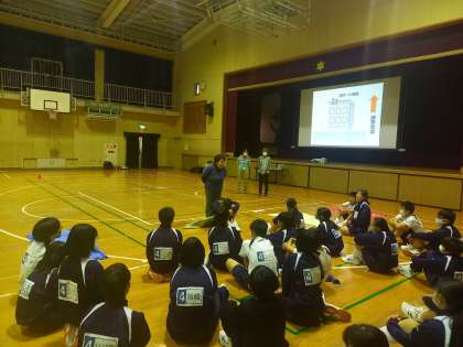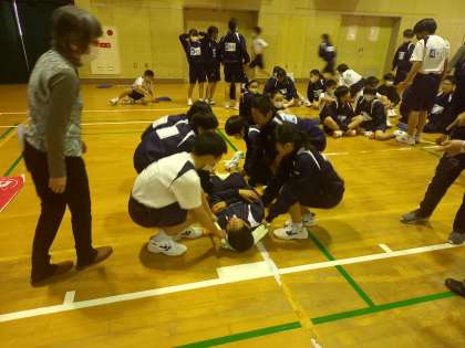 1年生は、国土交通省と地域河川レンジャーアドバイザーの方々を講師にお招きして防災スクールを開催しています。自助、共助、公助についても学びます。