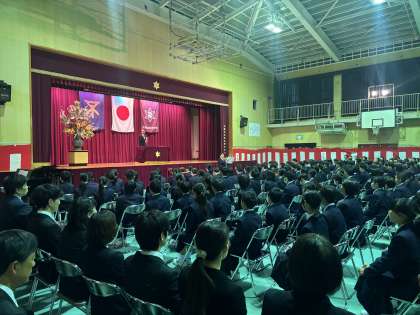 今年から変更された制服に身をつつみ新入生236名が入学しました。キラキラ輝い瞳が印象的でこれからの中学校生活が楽しみです。