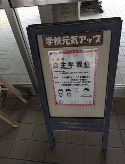 明日より中間テスト1週間前になりますので、学校元気アップ事業主催の放課後自主学習会がスタートします。ぜひ参加してください!