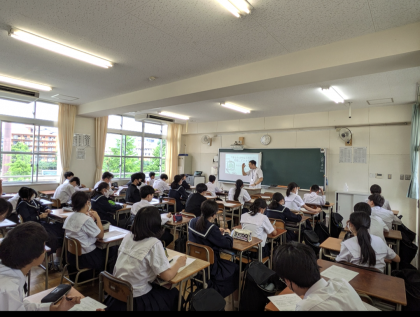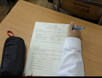 5時間目、2年生はキャリア教育です。「人はなぜ学び働くのか」みんなで意見を出し合い考えます。