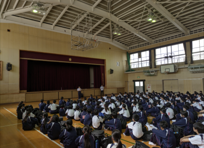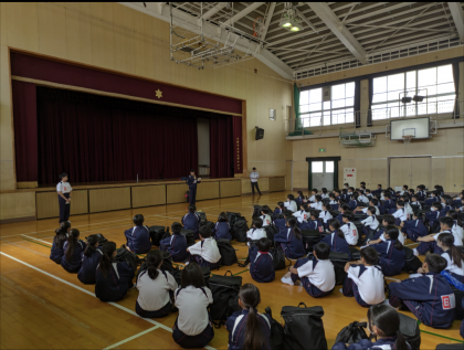 出発式です。参加者全員時間を守り集合できました。また忘れ物をする生徒もいませんでした。2日間この調子で頑張りましょう!