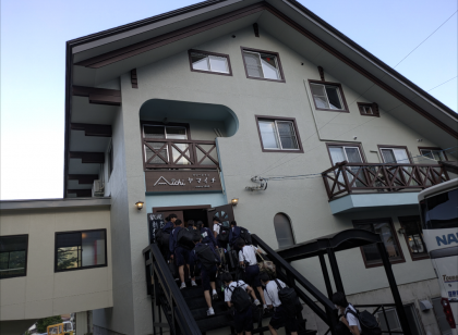 予定どおり分宿の宿舎に到着しました。1組の宿舎です。