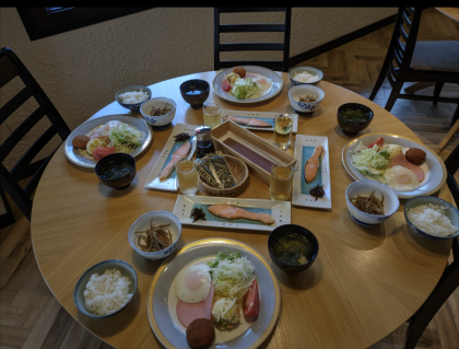 美味しい朝ごはん、これからの活動に備えてたくさん食べましょう。