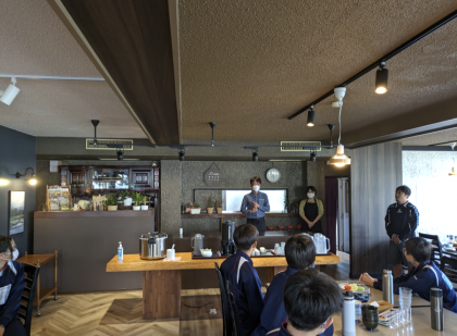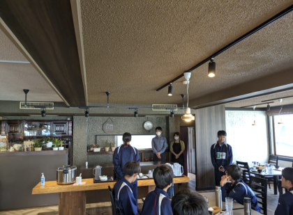 朝食のあと退館式を行ないました。美味しい食事と温かいお風呂など快適に過ごすことができました。ありがとうございました!