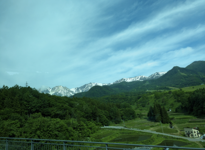 体験活動場所へ移動です。緑がまぶしく素晴らしい景色です。