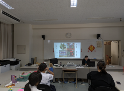 本日は、本校で設置している民族学級の日です。今日は、中国の端午せつの日で、ちまきを食べるので、折り紙で作ります。