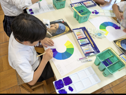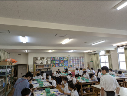 1時間目、1年生美術科の研究授業です。総合教育センターよりスクールアドバイザーをお迎えしてご指導いただきます。