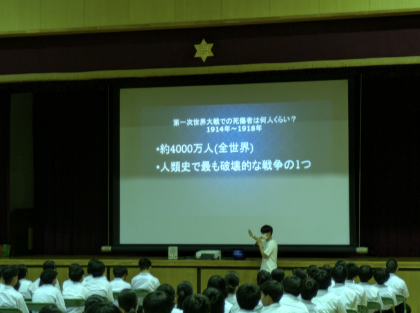 2年生は、5.6時間目に平和学習を行いました。Z世代と戦争と題した、NHKの番組を視聴し、戦争と平和について考えました。