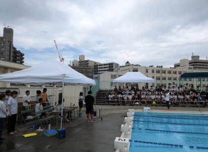 閉会式です。最後まで全力で競技に参加し、応援も一生懸命しました。さすが3年生、素晴らしい水泳大会でした。