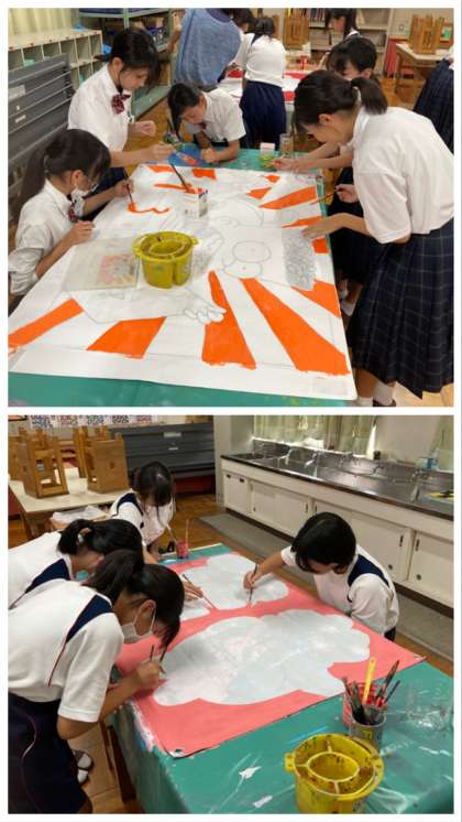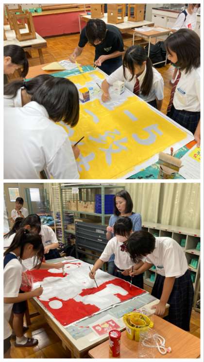 今月末の体育大会に向けて、学級旗作成が始まりました。