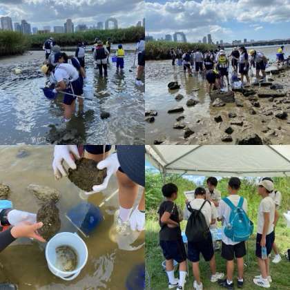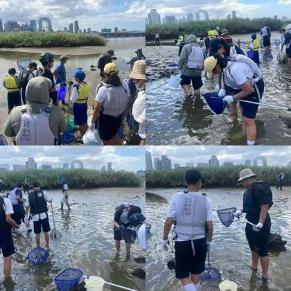 9月とはいえ、とても暑い中での調査となりましたが、河川調査(水温、流れの速さ、透明度など)や生物採取、大阪の河川の学習、パックテストなどしっかりと活動できました。