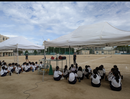 6時間目、1年生保健体育科の研究授業です。大学より担当の先生も2名来ていただいています。体育大会に向けての授業です。