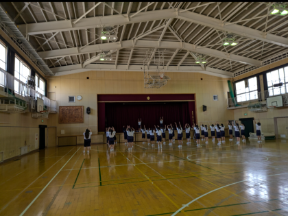 2時間目、教育実習生の研究授業です。2年生の保健体育で、マット運動を行います。