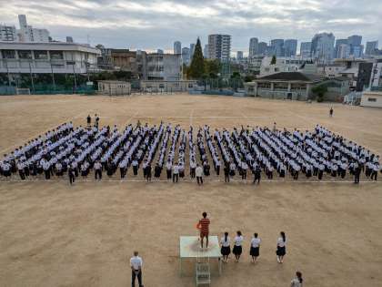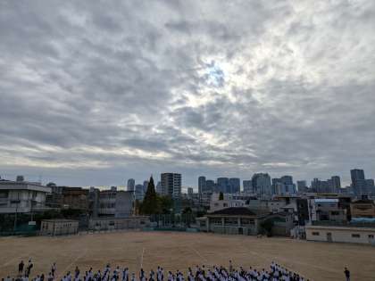 グランドでの全校集会です。