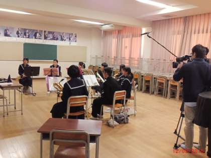 12月9日(水)に、北中吹奏楽部は毎日放送(MBS)の取材を受けました。吹奏楽部は、大阪市音楽団の方に学校まで来ていただき、レッスンを受けています。毎日放送は大阪市音楽団の取材の一環として、本校でのレッスンのようすを撮影しました。