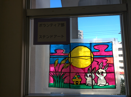 学校をさらに楽しい雰囲気にの思いで、ステンドアートを制作しました。