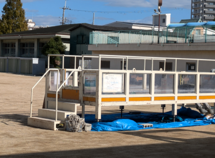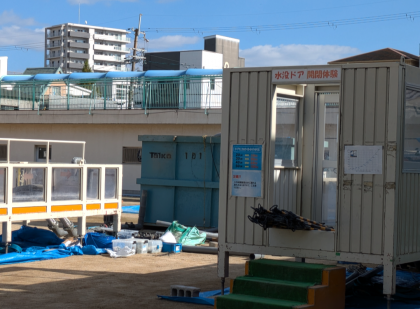 明日の1年生、防災スクールに向けて準備していただいています。流れる川体験や水没ドア体験など行います。