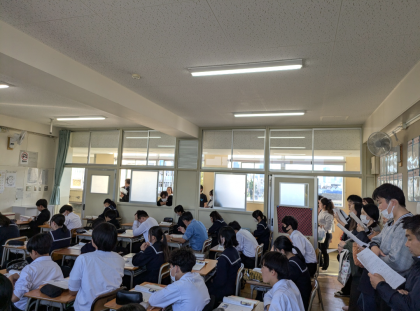 6時間目、2年生の研究授業を校区小学校の先生方をお招きして実施しました。1クラスは道徳、他のクラスはビブリオバトルを行いました。