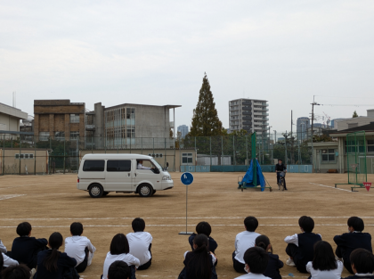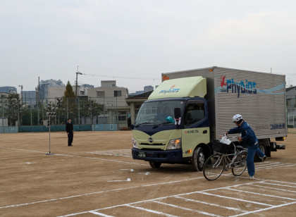 自転車での交差点の渡り方や一旦停止の場合の待ち方や安全確認です。