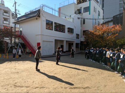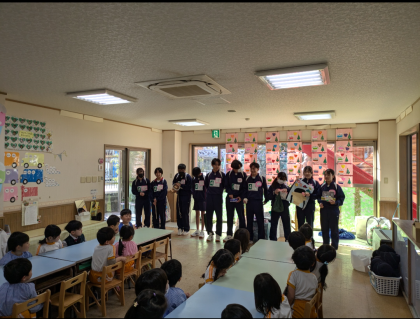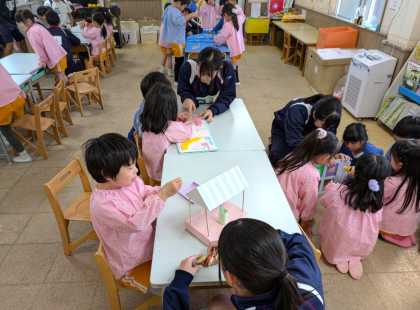 3年生、2クラスは2、3時間目にひかり幼稚園で保育実習を行いました。本日で全クラスが終了です。かわいい幼稚園児さんと家庭科の課題で作成したおもちゃで楽しい時間を過ごしました。