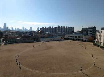 おだやかな天気でグランドでは持久走の授業です。